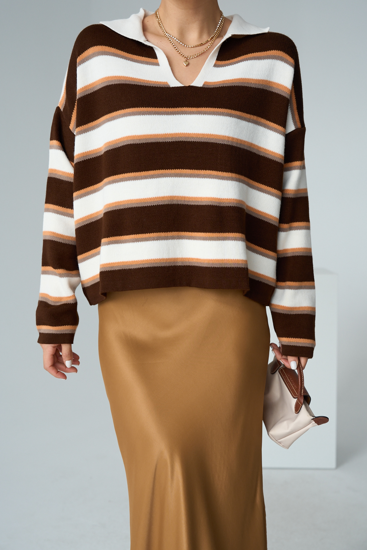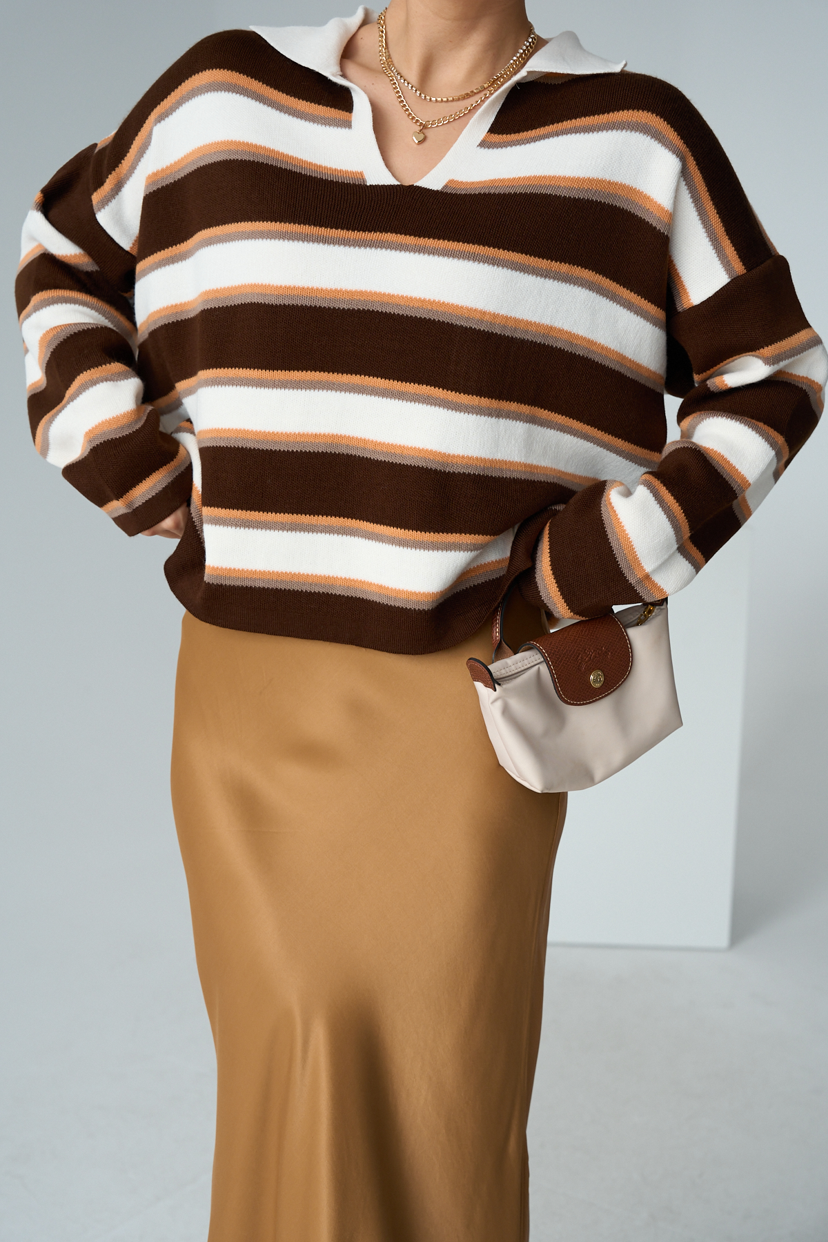 Jersey con cuello en V Tipo Polo Largo a la cintura