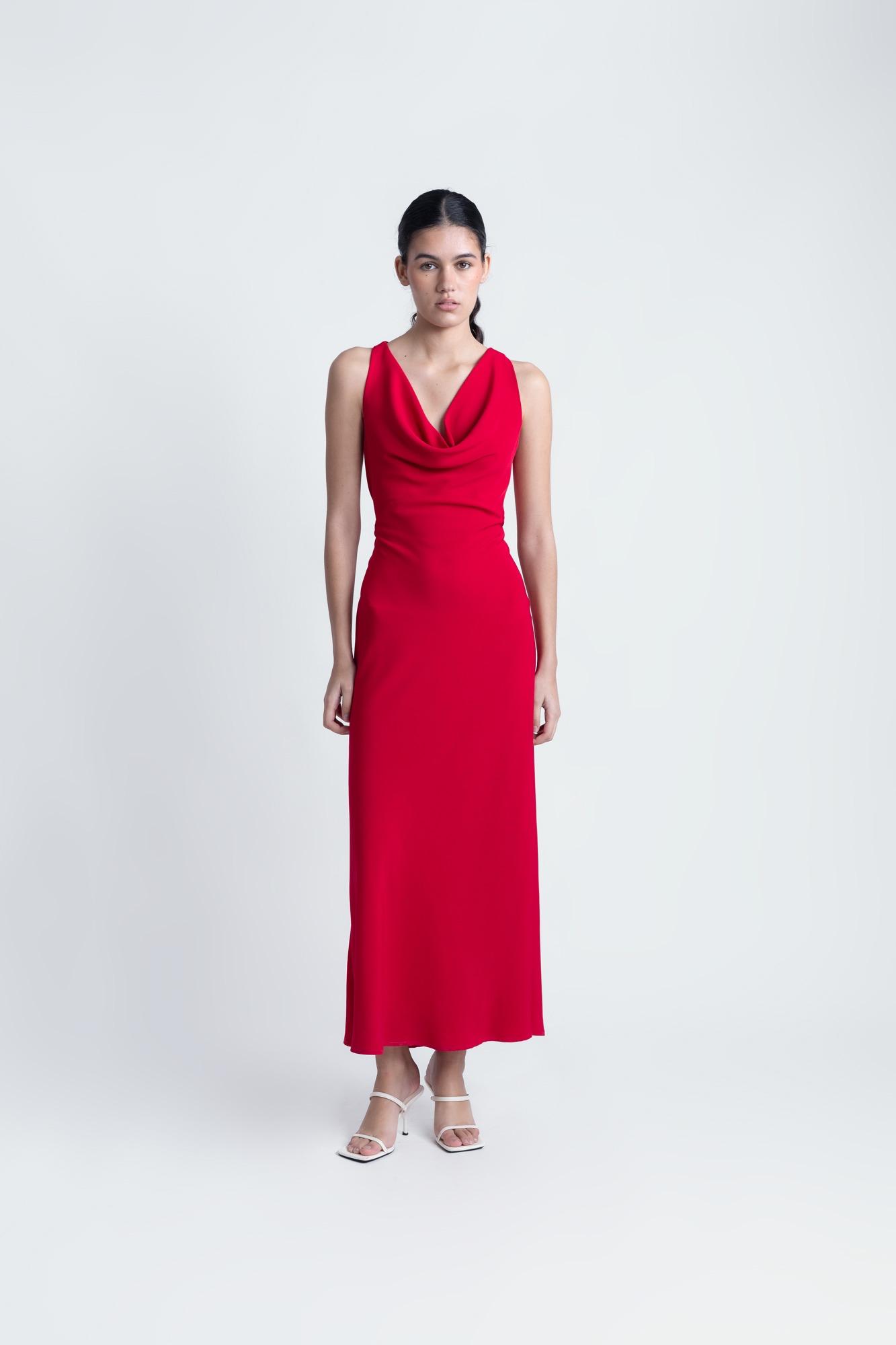 Diseño elegante Escote drapeado espalda con aplique Corte recto y favorecedor